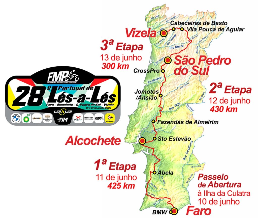 2026 oferece um percurso inovador, ligando ligar Faro a Vizela, com paragem em Alcochete e S. Pedro do Sul, com uma extensão total de 1155 quilómetros e um revolucionário Passeio de Abertura, em Faro. Ajudando a poupar forças para a longa e exigente primeira etapa, com 425 km desde a capital algarvia até Alcochete, os mototuristas terão direito a um turismo diferente, em agradável passeio de barco até à Ilha da Culatra, no Dia de Portugal, de Camões e das Comunidades Portuguesas. Na segunda etapa, entre Alcochete e São Pedro do Sul serão cumpridos 430 km, enquanto no último dia, a ligação mais curta que não menos exigente em termos de condução, terá apenas 300 km até Vizela.
