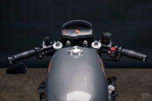 Foi instalado um kit de admissão Moto Hooligan para melhorar a respiração. A cablagem elétrica foi toda reconstruída. A embraiagem e o travão utilizam bombas radiais Magura HC1.
