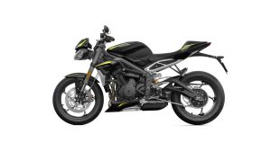 O novo Triumph Shift Assist, com um quickshifter nos dois sentidos, é outro destaque técnico presente no modelo, além de uma 1ª e 2ª relações de caixa mais curtas. Esta é a moto mais leve do segmento, com 166 kg e uma relação peso-potência digna de registo. O motor cumpre a norma Euro 5.