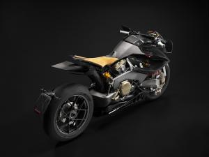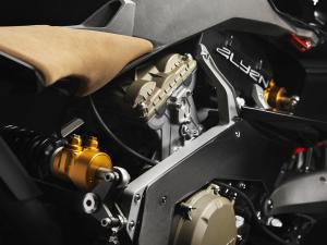 O poder de travagem tem origem num sistema da Brembo GP4 e são suficientes para “estancar” um motor L-twin power com uma capacidade de 1285 cc com uma taxa de compressão de 11,3:1. É arrefecido a água e trabalha em conjunto com uma caixa de seis velocidades de embraiagem húmida que permite explorar os 205 CV do motor disponíveis às 10 500 rpm. O depósito tem 11 litros de capacidade e a moto um comprimento de 1,575 mm.