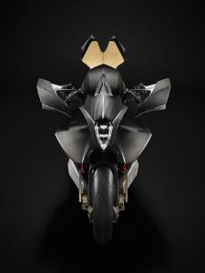 A moto é cheia de ângulos e painéis em fibra de carbono. As jantes são de 17″ com pneus 120/70 à frente e 200/60 atrás são feitas em fibra de carbono, enquanto as torres da suspensão são produzidas em magnésio. As saídas de escape contribuem para o loggo desportivo e estão posicionados logo abaixo do banco. A própria suspensão foi redesenhada e permite “atacar” as curvas em grande estilo.