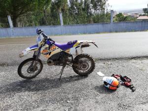 Basta olhar para a moto para ver que está ainda bastante “direitinha” e que mesmo algumas das alterações que tem, como as proteções de mãos ou o depósito ligeiramente maior, com 11 litros em vez dos habituais 9, servem para confirmar o óbvio: o seu dono continua a fazer uso dela! É uma pura moto de enduro e o seu habitat natural é esse, mesmo que evitando uma utilização mais radical, não se nega a nada, incluindo alguns enduros para clássicas!