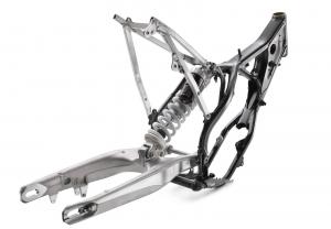 Para uma quase “trintona” consegue ser bastante atual em vários aspetos: tem um bom quadro, travões à altura e suspensões de qualidade, incluindo Ohlins atrás e umas grossas Marzocchi Magnum de 50 mm, mas ainda convencionais. Olhando com mais atenção vemos que o amortecedor traseiro ainda não é de ação direta (vulgo pds) que só surgiu cerca de 3 anos mais tarde e é uma imagem de marca, sendo adorado por uns e odiado por outros!