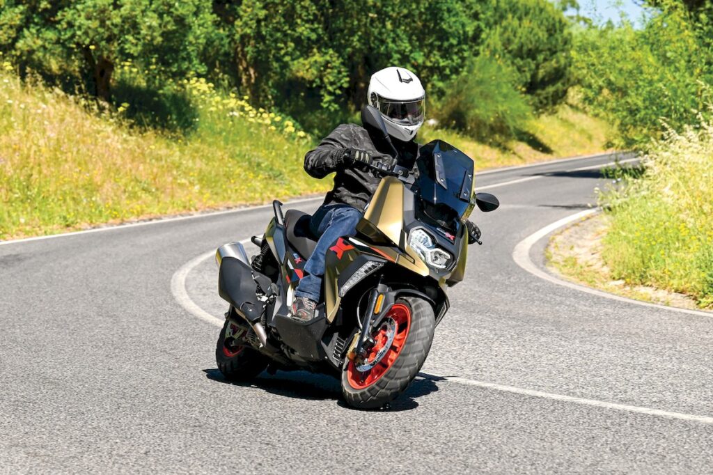 Um dos pontos a favor desta C400X sempre foi o seu motor, um monocilíndrico enérgico e com vontade de mostrar a sua rebeldia. Sabendo que as normas EURO 5+, regra geral, têm implicações na performance de muitas motos recentes, esperávamos exatamente isso nesta scooter. Os seus 350 cc e 34 CV às 7.500 rpm sofreram um pouco com a nova regulamentação de emissões, mas os baixos e médios regimes mantêm-se vivos. Onde sentimos mais o “estrangulamento” do bloco é em rotações mais elevadas e velocidades de auto estrada. Contudo, a sua energia continua a proporcionar uma fuga ao trânsito com emoção e de forma eficiente. O arranque é rápido e a resposta do acelerador ao punho direito é bastante direta. O que perdemos em velocidade máxima, parece que foi ganho em menores vibrações e suavidade do bloco. Os consumos parecem estar semelhantes à geração anterior, a rondar os 3,5 L/100km numa condução mista e despreocupada, sendo relativamente fácil baixar dos 3 litros, se formos mais contidos com o punho direito.