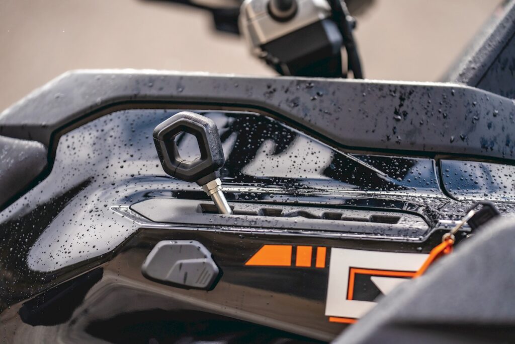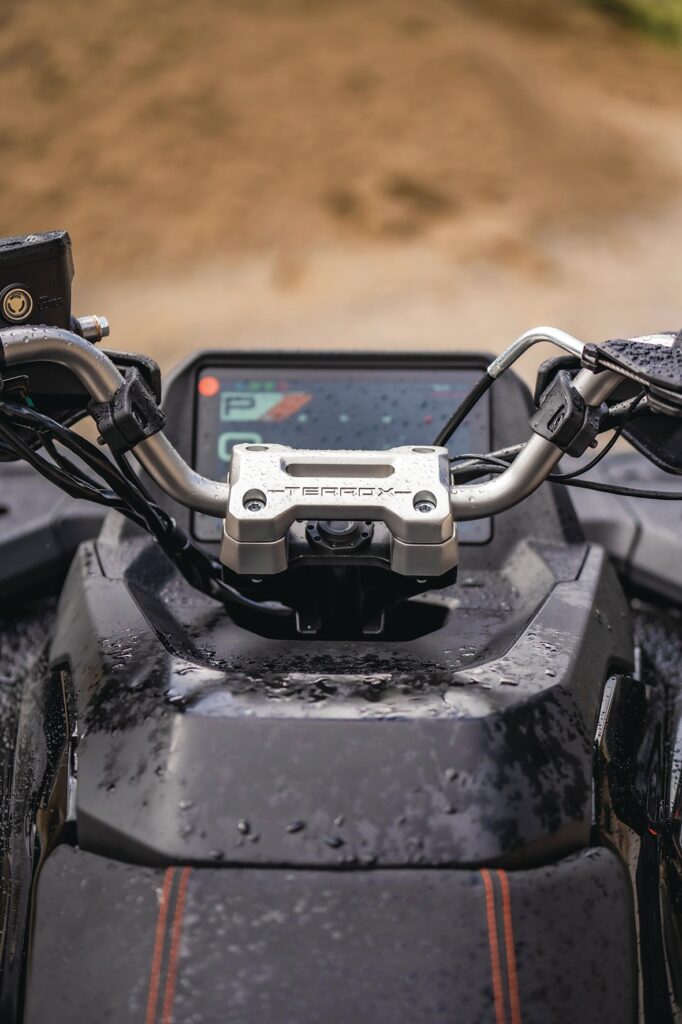 Este que passa a ser o expoente máximo da gama TERROX eleva a experiência de condução a um novo patamar. O design é ainda mais agressivo, com uma postura larga e musculada, que inspira confiança. A capacidade de aceleração musculada e imediata, permite ultrapassar qualquer obstáculo com facilidade e, uma vez mais, com um conforto e naturalidade que fazem toda a diferença. A GOES não se limitou a colocar um motor potente, adaptou todo o conjunto para lidar com esse poderio. A suspensão independente ajustável na pré-carga da mola e a gás na versão Xconnect é robusta, com a travagem a mostrar grande capacidade de parar o conjunto de forma imediata e segura em qualquer situação, de forma perfeitamente controlada. O quadro, uma estrutura em tubos de aço, está reforçada nos ponto chave para garantir maior fiabilidade. A facilidade, confiança e segurança que nos transmite na sua condução é das coisas que mais impressiona, pois naturalmente vai-nos mostrando que não existem praticamente barreiras intransponíveis para si e tudo feito de forma tranquila. Apenas quando o levamos ao extremo é que notamos algumas características a ter em conta como seja a frente leve para curvar rápido. Aqui, há que apontar à curva, desacelerar e aproveitar essa deslocação e transferências de massas para voltar a acelerar a fundo e descrever a curva… caso tentemos fazer as curvas mais fechadas em plena aceleração, contem com umas saídas em frente mesmo que rodando apenas com a tração traseira. A capacidade tração do TERROX 1000 é notável. O painel tátil “Next-Gen” de 8” é um computador de bordo muito completo e também muito fácil de navegar e fazer as alterações eletrónicas que pretendemos no ATV. Além disso podemos emparelhar os nossos smartphones e espelhar os nossos telefones se forem Apple (através do Apple CarPlay). Entre essas funcionalidades temos o EPS ajustável em vários níveis para se adaptar às nossas necessidades. Tal como no 500, também o 1000 tem a possibilidade de optarmos pela tração parcial (2×4), total (4×4) e bloqueio do diferencia.
