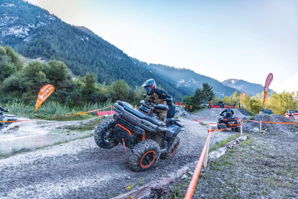 O que procuramos num ATV como o TERROX 500 é equilíbrio! Seja na relação qualidade/preço, seja nas prestações para trabalho ou para lazer. Quando digo prestações estou a incluir tudo o que diz respeito ao seu funcionamento desde o desempenho motriz, ciclística, conforto, comodidades, capacidade de carga e versatilidade para instalar ou desinstalar acessórios de forma rápida e prática. E isto, o TERROX 500 tem de sobra. O hotel Gut Brandlhof em Saalfelden, na Áustria foi a base para esta apresentação, com uma mina ainda em funcionamento a servir-nos de pista de testes. Divididas em quatro estações, na primeira fomos brindados com um percurso curto, com algumas curvas fechadas, passagens por água e a transposição de alguns obstáculos simples. Na segunda estação, enfrentámos duas subidas mais íngremes e novamente uma passagem por água. No terceiro ponto de passagem, tivemos mais algumas subidas e descidas, mas pudemos rolar mais rápido com os novos GOES. Para finalizar, um percurso mais extenso e rolante para por-mos à prova a capacidade de subida de rotação e velocidade, bem com a travagem. Em termos de terreno, a única coisa que necessitámos foi optar por rolar com tração parcial ou total, dependendo do gosto pessoal e experiência de cada um. O bloqueio do diferencial dianteiro não foi necessário atuar em nenhum momento.