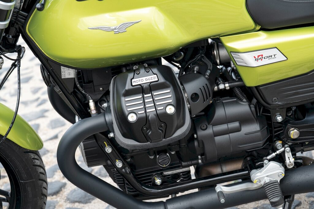 É difícil para uma marca histórica manter a confiança nas vendas de um modelo com quase sete décadas, mas para a Guzzi tem sido possível. Dirão que é um segmento de nicho, claro que sim, mas um nicho que tem vindo a crescer e a ganhar adeptos, permitindo assim dar mais valor à família V7. Dentro da própria gama italiana, a Guzzi sempre disponibilizou diversas opções e versões, sendo esta Sport o pináculo da tecnologia e desempenho. Na verdade, esta Sport representa a V7 mais tecnológica de sempre. Cumpridora da Norma Euro5+, que não penaliza as prestações, como veremos mais adiante, passou a ter acelerador eletrónico “ride-by-wire”, novo sistema de escape, novo filtro de ar, novas suspensões e um novo modo Sport, exclusivo desta versão, que se junta aos já existentes Road e Rain que as versões Stone e Special já incluíam. A V7 Sport passa a utilizar uma IMU de seis eixos que permite gerir o ABS e controlo de tração em curva e para as viagens mais longas, temos sempre à nossa disposição o “cruise control”. Surpreendente é também o preço a pagar por esta que é a V7 mais tecnológica de sempre, uma vez que se mantém dentro dos valores das restantes opções, com uma diferença de cerca de 1000€ face à Stone, mas cujos argumentos valem cada cêntimo a mais.