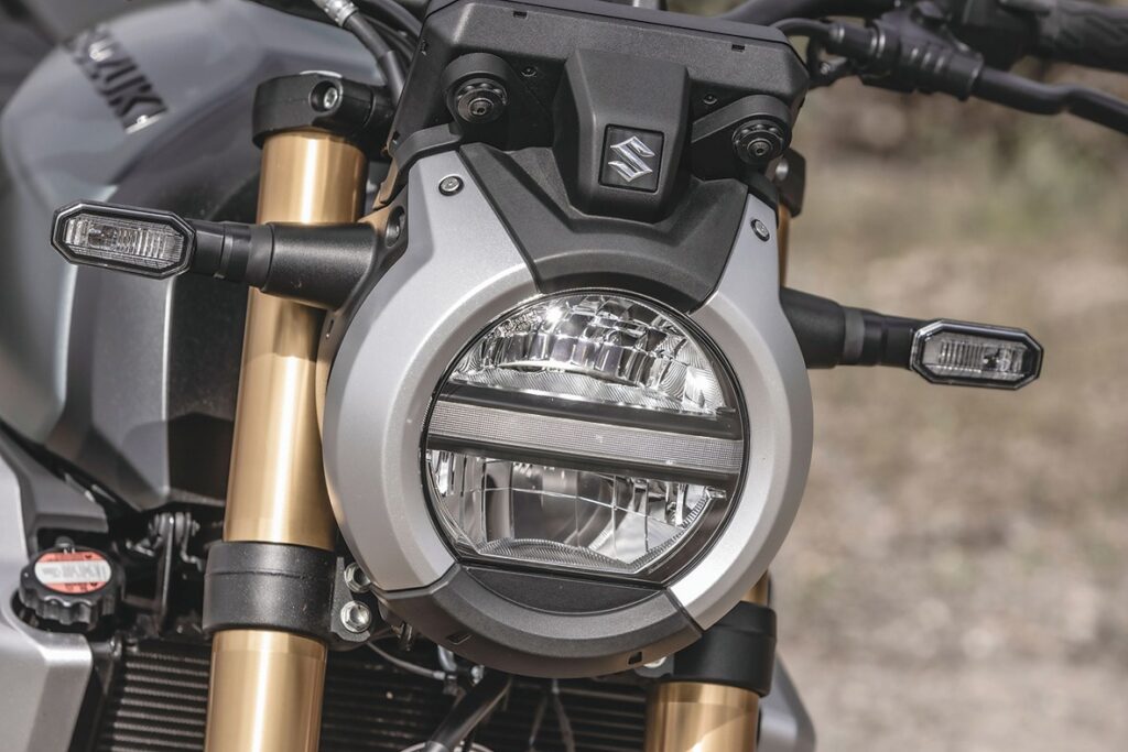 A Suzuki manteve a filosofia de simplicidade funcional. Equipa um painel digital TFT de 5 polegadas, claro e intuitivo, modos de condução simples (A, B ou C), controlo de tração ajustável em três níveis (com possibilidade de desligar) e um acelerador eletrónico bem calibrado. A entrada USB passou a ser Tipe-C, detalhe que revela atenção às exigências atuais. Não há excesso de modos nem complicações desnecessárias, apenas o essencial, bem afinado.