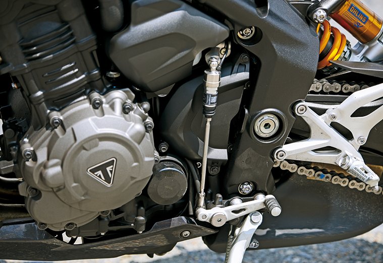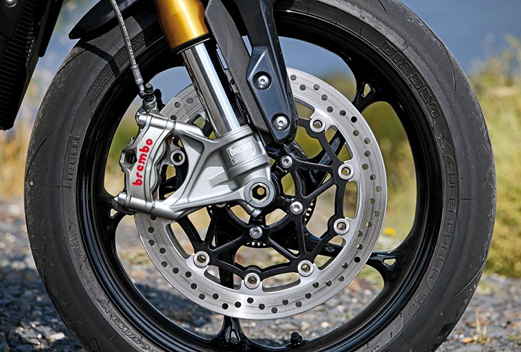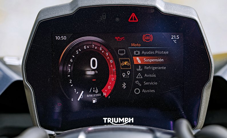 O motor tricilindrico de 1160 cc mantém tudo o que permitiu a esta família ganhar tanta fama nas últimas décadas: uma sólida entrega de binário desde baixo regime, que não cai em nenhum momento e um carácter mecânico que não se esconde. Graças à nova estratégia de equilíbrio da cambota, o motor ganhou maior suavidade sem, no entanto, perder pitada da sua essência. Continua a ser um bloco exigente, com alma de competição e músculo de sobra para nos deixar pregados ao assento. Não admite meias medidas: se abrimos gás, responde se hesitação. Se nos distraímos, a eletrónica lembra-nos que está cá para nos ajudar e não complicar.