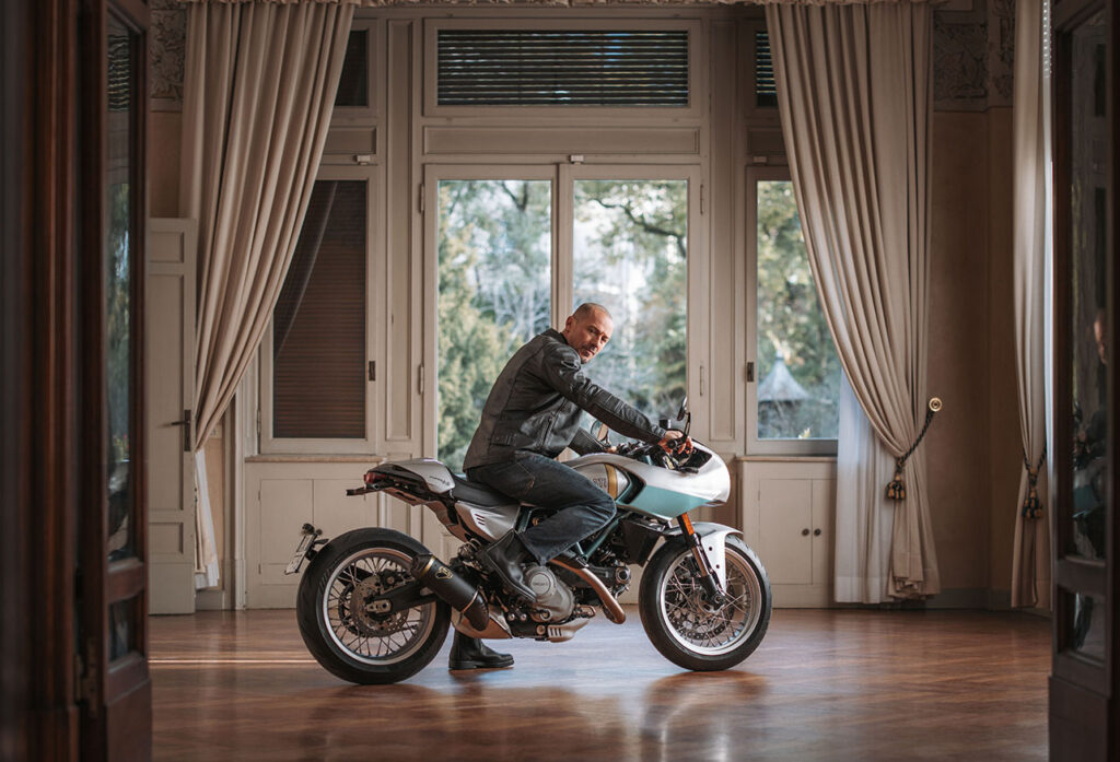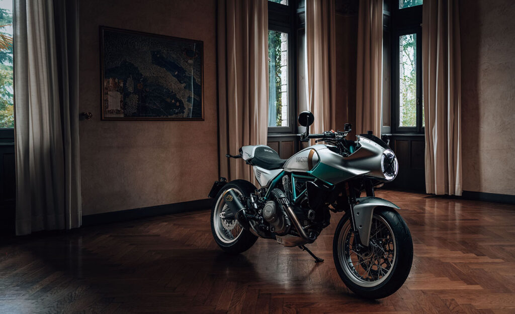 O guiador clip-on com espelhos retrovisores nas extremidades, a carenagem curta e afilada e a traseira confirmam a personalidade Café Racer desta moto de coleção. Os diversos componentes em alumínio maquinado, como as manetes de travão e embraiagem com reservatórios de óleo, os pedais e a tampa de combustível Rizoma fornecida de série, chamam a atenção e valorizam ainda mais uma moto concebida para ser admirada tanto parada como em andamento.