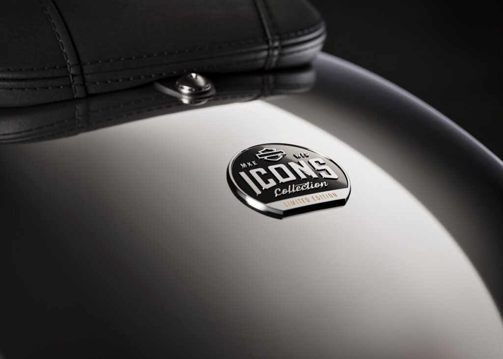 Os medalhões tridimensionais do depósito de combustível reproduzem o design do modelo original Fat Boy. Uma inserção comemorativa na consola do depósito é gravada com o número de série e um medalhão da Icons Collection está localizado no guarda-lamas traseiro.