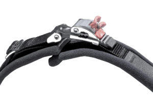 – Rotação da queixeira com trajetória elíptica, com abertura fácil, só com uma mão. O botão está colocado na zona central do queixo e possui tranca de segurança;