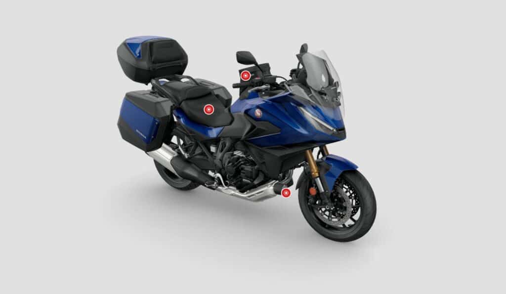 É possível equipar a moto diretamente com um pack de acessórios elegível para o modelo, e o mesmo aparecerá imediatamente montado na moto para que avalie visualmente tal como a indicação do respetivo preço.