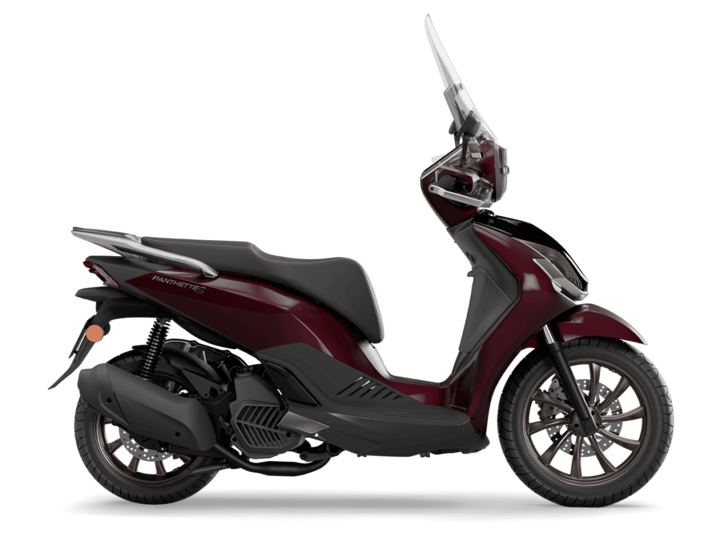 A Panthette 125 S, foto em baixo, é uma scooter urbana de roda alta. Equipada com motor de refrigeração líquida com 12 Cv às 8500 rpm, contempla caraterísticas que a fazem destacar da concorrência, como o TFT vertical a cores de 7 polegadas com espelhamento, compartimento debaixo do banco para 2 capacetes, sistema keyless e protetores de mãos. Finalmente, a Panthette 125 X é a scooter aventureira da família. A suspensão com curso superior, os pneus montados em jantes de raios e a forquilha invertida marcam o aspeto robusto deste modelo.