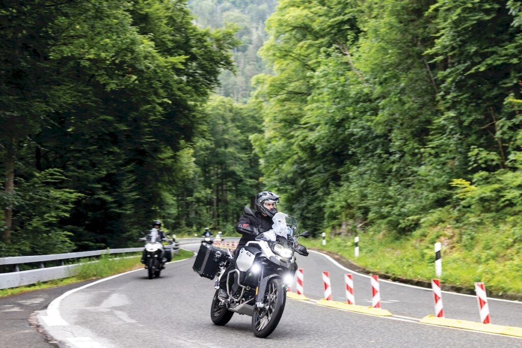 A saída de Munique não foi difícil, a único inconveniente foi mesmo o calor que se fazia sentir, com os termómetros nos 36 °C. Tudo o resto foi um verdadeiro passeio a bordo da F 900 GS Adventure. Desde o conforto da posição de condução à facilidade com que se lida com ela nos primeiros metros em cidade, tudo parecia encaixar. Mesmo carregada com malas laterais e o depósito de 23 litros cheio, a moto mantém-se equilibrada e surpreendentemente ágil. A altura do assento ao solo é acessível, o que facilita as manobras a motociclistas de estatura média.