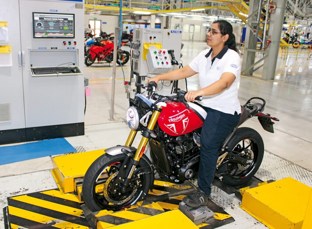 Durante a nossa visita, os responsáveis pela Bajaj partilharam alguns dos planos para o futuro da empresa. Esta, está a fazer um grande investimento no desenvolvimento de motos elétricas e tecnologias de mobilidade sustentável. Modelos como a Chetak, a scooter elétrica, demonstram a aposta da Bajaj na inovação e a adaptação às novas tendências do mercado. A visita à fábrica de Pune foi uma experiência enriquecedora que nos permitiu conhecer de perto a excelência operacional de uma das marcas mais influentes na indústria das motos. Com a combinação de tecnologia, eficiência e compromisso com o meio ambiente, a Bajaj continua na vanguarda do fabrico de veículos de duas rodas a nível global. Alguns dados que demonstram o que é capaz de fazer este fabricante na industria das duas rodas, são, por exemplo estes: desde 2017 possui 48% das ações da Pierer Mobility AG (grupo KTM/Husqvarna/GasGas), a suas vendas globais de motos colocam-nos atualmente dentro do top 3 mundial e são lideres mundiais na produção dos famosos “tuk-tuk”, além de outros veículos. Outro dado interessante: desta fábrica sai uma moto por minuto de cada linha de montagem, em turnos de 8 horas e podem chegar a ter dois turnos por dia… é só fazer as contas! Mas se ainda assim não ficaram impressionados, há mais: acabam de receber o prestigiado prémio internacional TPM para a melhor fábrica automóvel do mundo, um galardão só ao alcance de muito poucos.