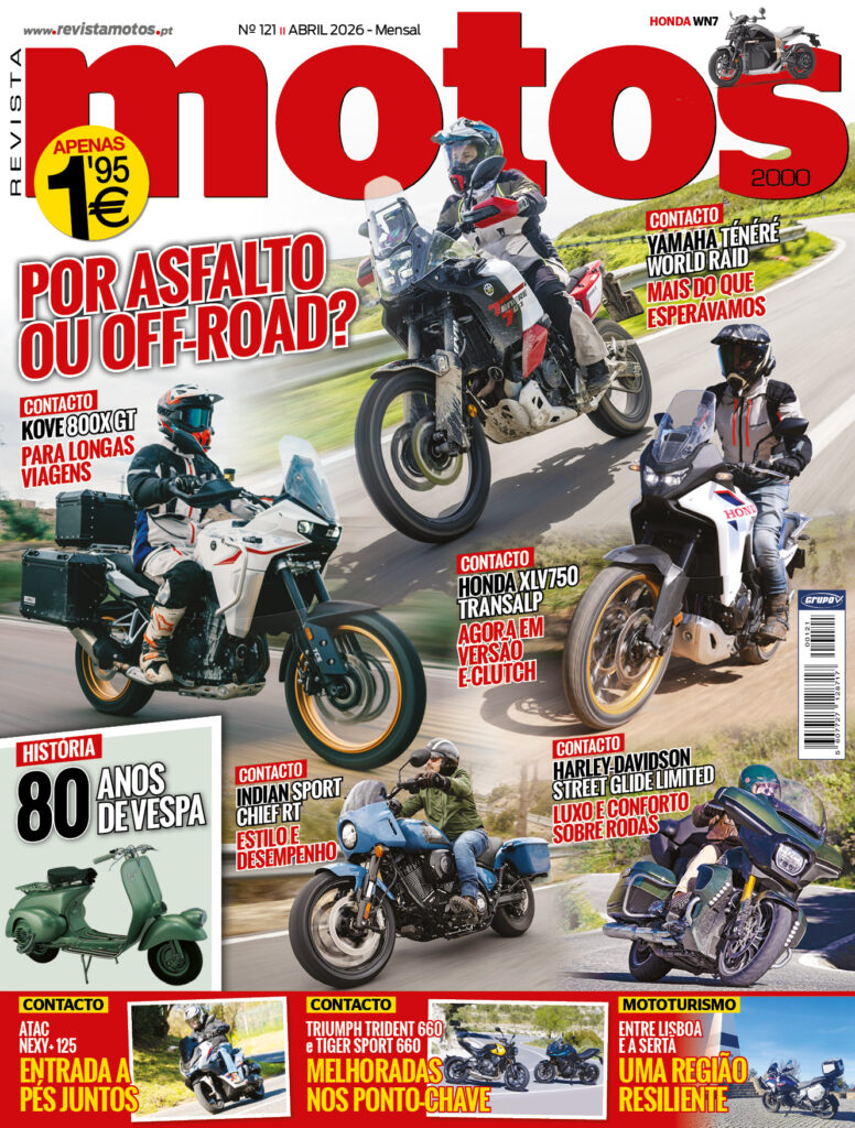 Ainda nesta edição de abril, testamos também a primeira moto grande elétrica da Honda, a WN7. Quais terão sido as sensações? E para finalizar uma revista repleta de “sumo”, a não perder a história dos 80 anos da Vespa e ainda a secção de Mototurismo que nos vai falar dos atrativos entre Lisboa e a Sertã.