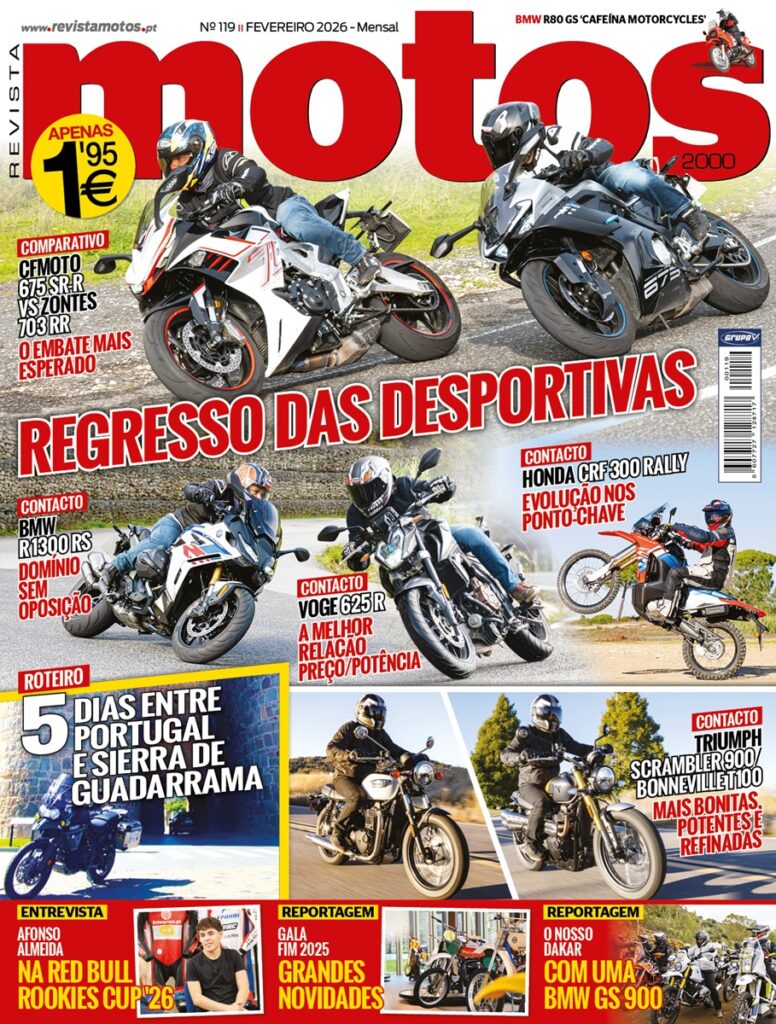 Como tema de abertura encontramos o comparativo entre duas motos desportivas de média cilindrada. A CFMOTO 675 SR-R e a Zontes 703 RR são extremamente completas e acessíveis, mas qual levará a melhor neste trabalho? Nesta também edição também testamos a BMW R 1300 RS, uma sport touring recheada de argumentos, e se as motos naked são a vossa paixão, então podem ficar a saber tudo sobre a Voge 625R.