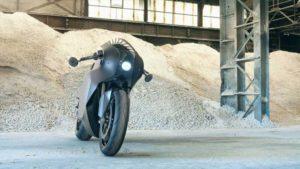 É uma superdesportiva de aspeto retro com carenagem integral e locomovida a eletricidade. Para ganhar peso, os parafusos são em titânio e tudo o resto que está à vista é feito em fibra de carbono. O quadro, a carenagem, o falso depósito, os guarda-lamas, assim como o basculante são em carbono.