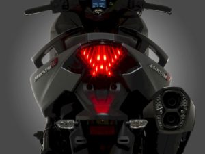 De destacar o sistema de travagem, onde encontramos um disco dianteiro duplo (275 mm) com pinças de 4 pistões e ancoragem radial, enquanto à frente equipa um disco do mesmo diâmetro.